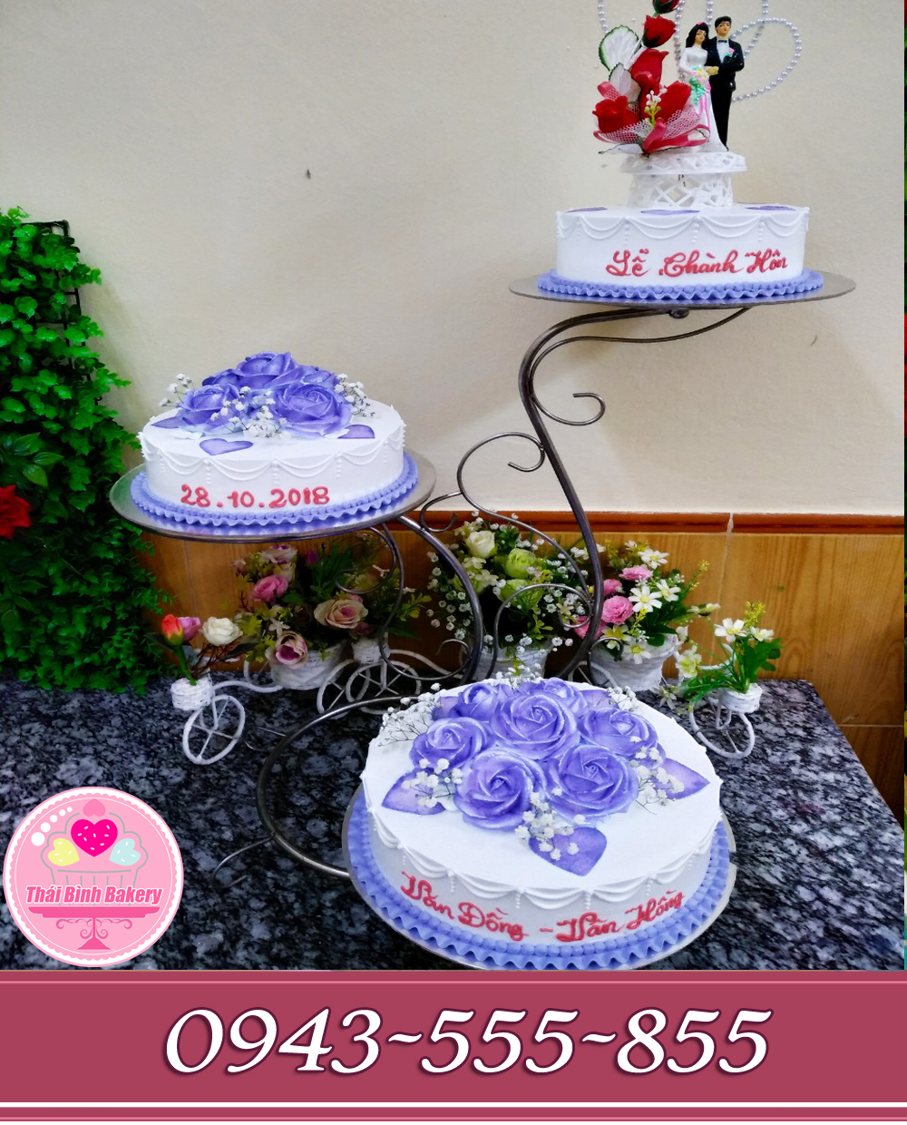 Đánh Giá: bánh tháp cưới 3 tầng tông tím bắt hoa hồng tím combo 3 bánh