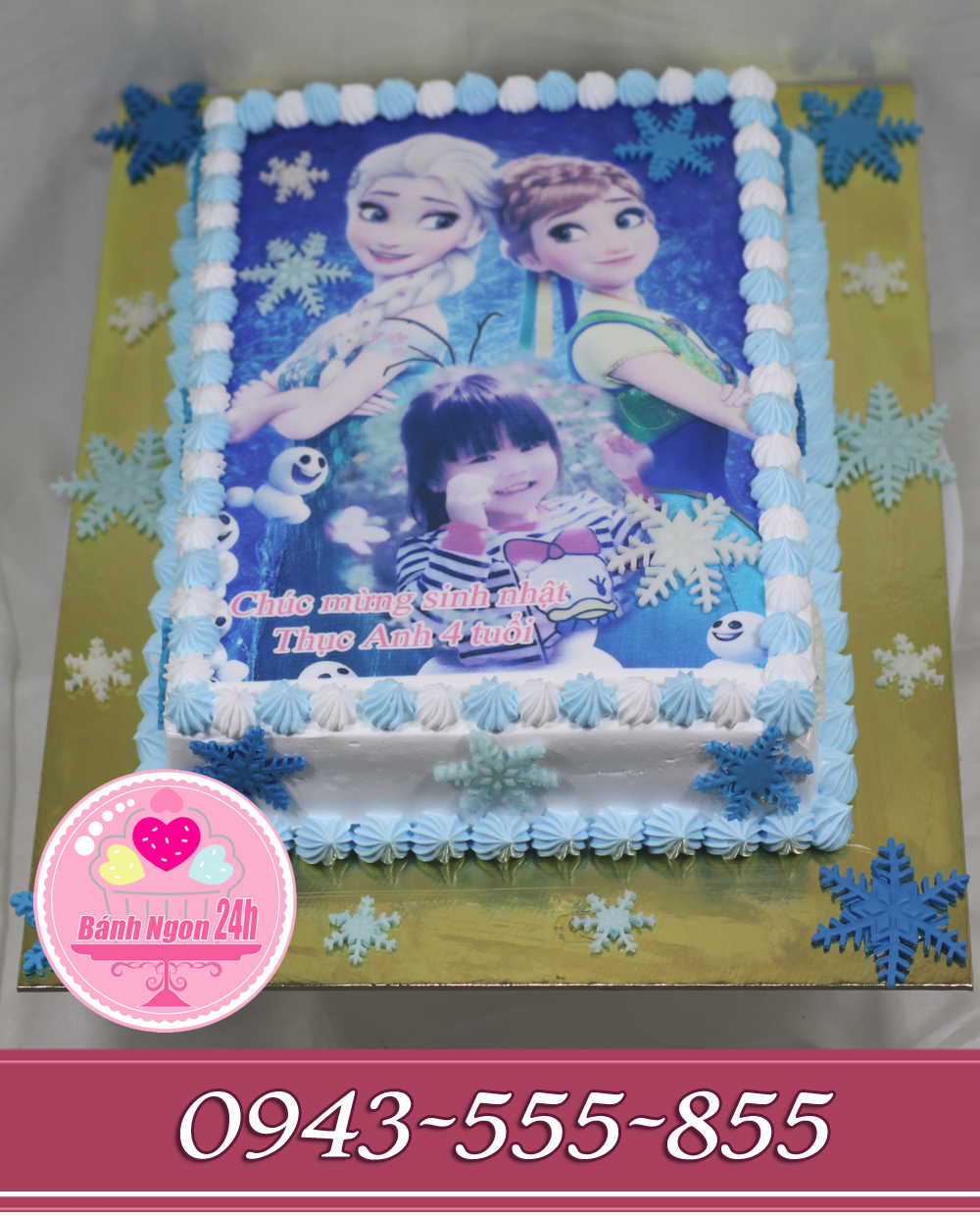 Đặt Bánh theo yêu cầuBánh hình chữ nhậtbánh in ảnh bé yêu cùng công chúa elsa và ana