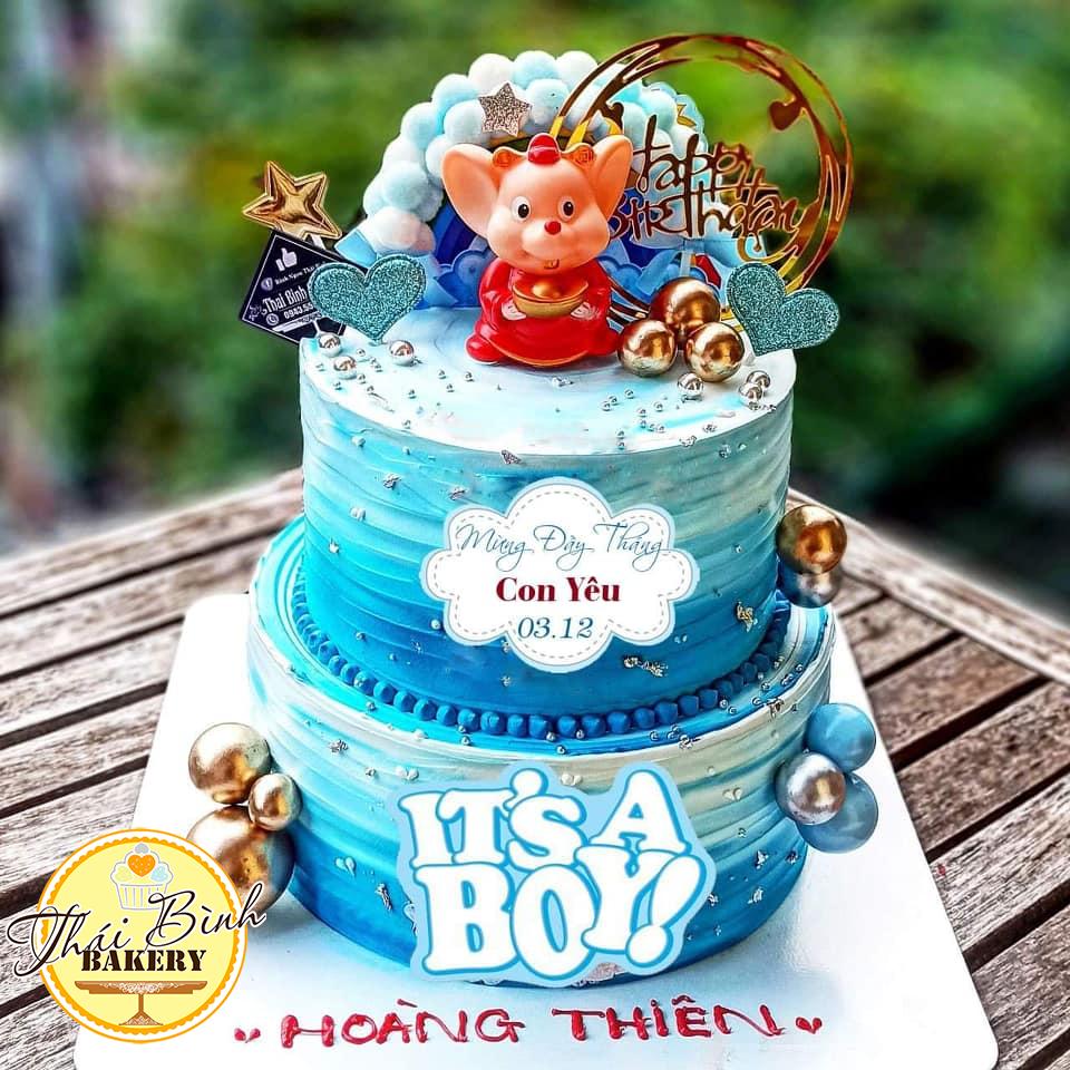 Đánh Giá: Bánh kem 2 tầng con chuột đỏ thỏi vàng mô hình mừng đầy tháng con yêu Hoàng Thiên 1 month