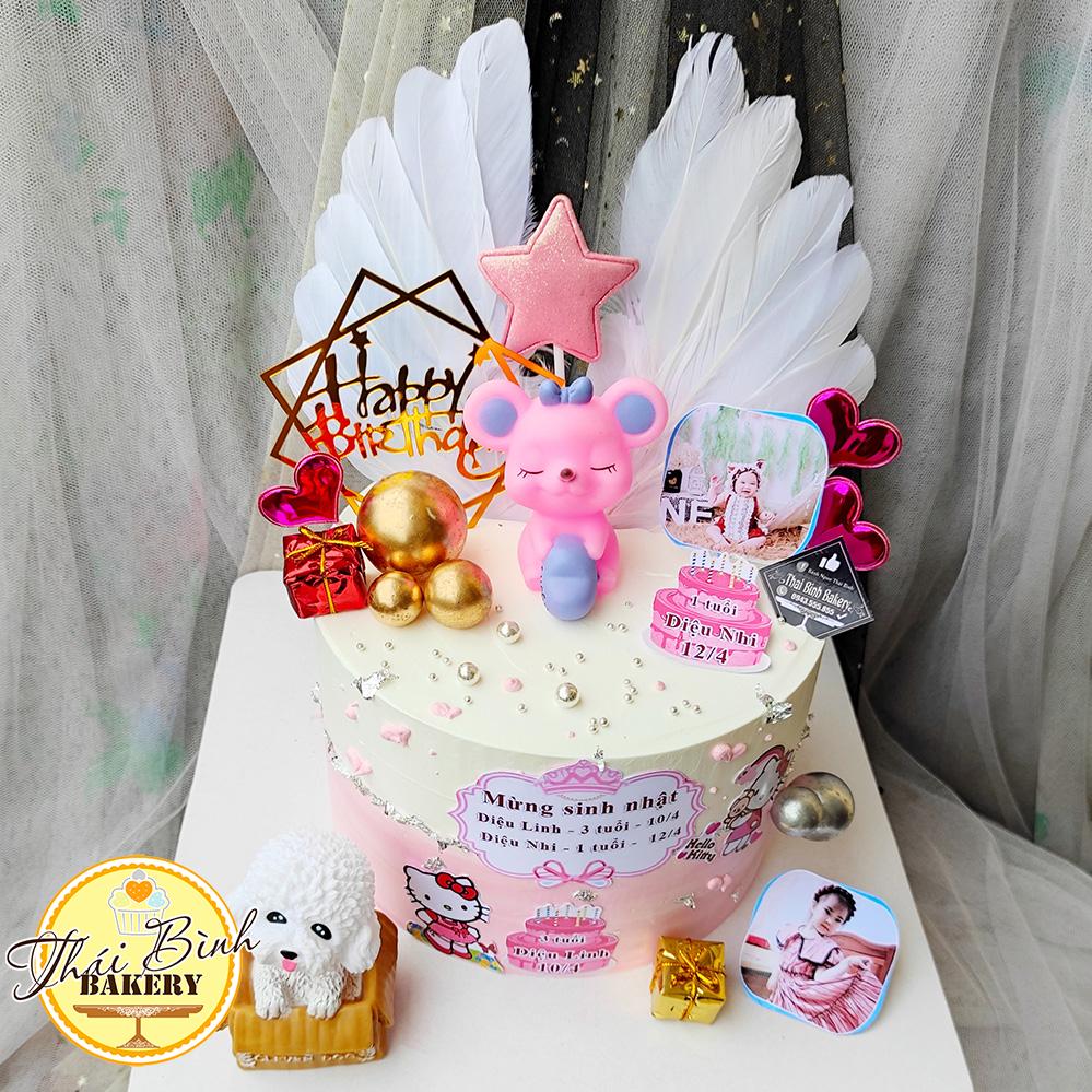 Đánh Giá: Bánh kem hình con chuột hồng và con chó trắng tông hồng tặng con yêu Diệu Linh 3Tuổi & Diệu Nhi 1Tuổi