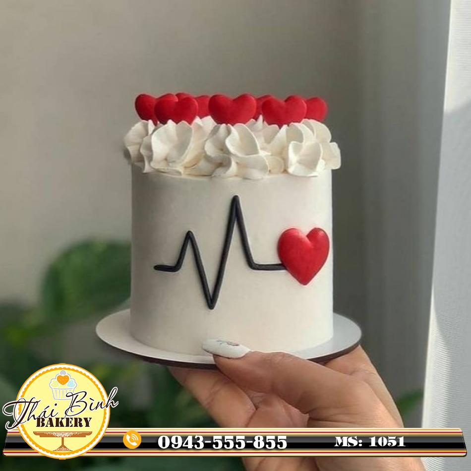 Đánh Giá: bánh kem nhịp đập trái tim xoáy hoa cắm tim đỏ tặng người thương
