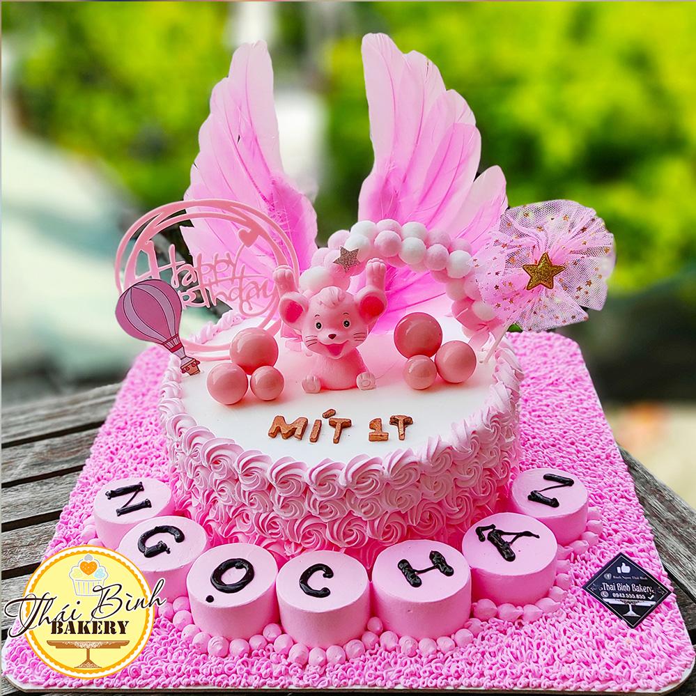 Bánh kem "bánh kem tuổi chuột tông hồng kèm cánh hồng tặng con yêu Handmade của thái bình bakery quà tặng có giá trị độc đáo, gây ấn tượng cho ngày Sinh Nhật, Làm cho Bữa tiệc của Bạn thêm vui vẻ và ấm áp
