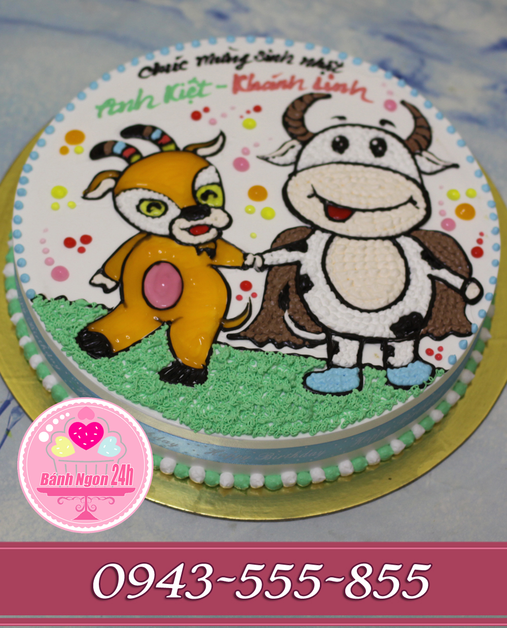 Đặt Bánh theo yêu cầuBánh hình trònbánh vẽ 2 anh em tuổi trâu và dê