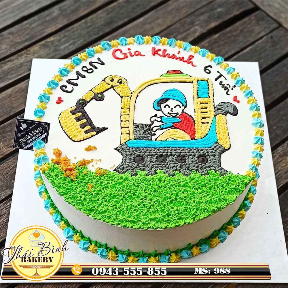 Bánh kem "bánh vẽ bé trai thích máy xúc Handmade của thái bình bakery quà tặng có giá trị độc đáo, gây ấn tượng cho ngày Sinh Nhật, Làm cho Bữa tiệc của Bạn thêm vui vẻ và ấm áp