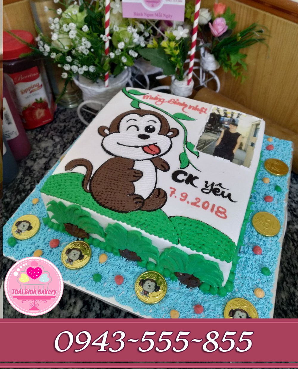 Bánh kem "Bánh sinh nhật tuổi khỉ in ảnh tặng ck yêu sắp cưới Handmade của thái bình bakery quà tặng có giá trị độc đáo, gây ấn tượng cho ngày Sinh Nhật, Làm cho Bữa tiệc của Bạn thêm vui vẻ và ấm áp