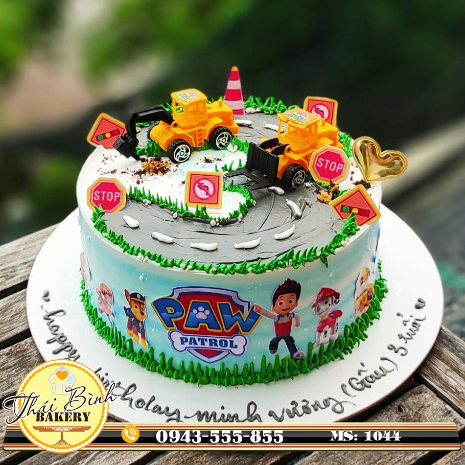 bánh kem chú chó cứu hộ bé minh vương thích máy xúc