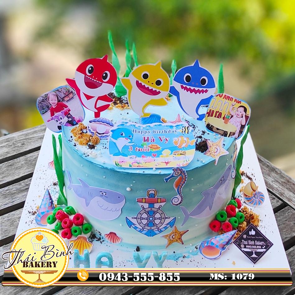 Đặt Bánh theo yêu cầuBánh hình trònBánh kem chủ đề baby shark tặng con yêu Hà Vy