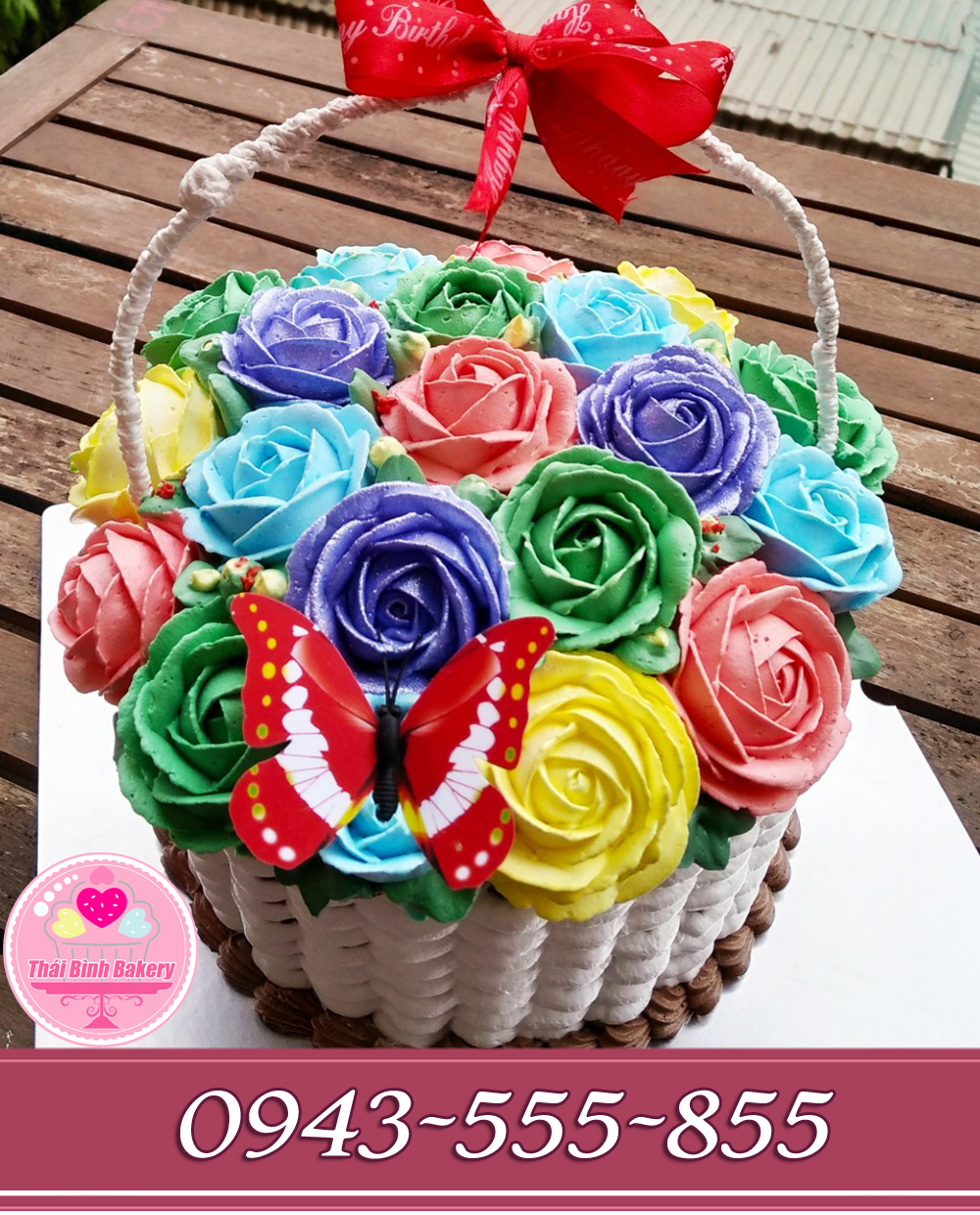 Bánh kem "bánh sinh nhật giỏ hoa bắt hoa sắc mầu Handmade của thái bình bakery quà tặng có giá trị độc đáo, gây ấn tượng cho ngày Sinh Nhật, Làm cho Bữa tiệc của Bạn thêm vui vẻ và ấm áp