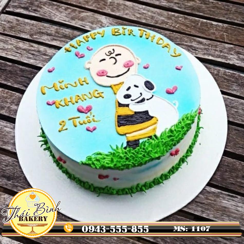 Đánh Giá: Bánh kem vẽ chibi cậu bé ôm chó dễ thương tặng con Minh Khang 2 tuổi