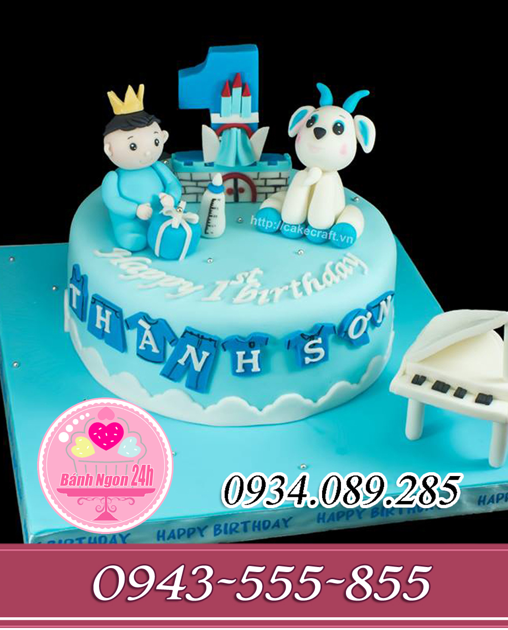 Đánh Giá: Bánh fonant cho bé trai hoàng gia 1 tuổi con dê tông xanh